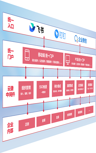 对协作平台提供支持服务,,,支持企业应用与协作平台对接,,,,包含组织同步、、消息集成、、、待办集成等。。支持目前主流的协作平台:钉钉、、、、企微和飞书。。。